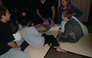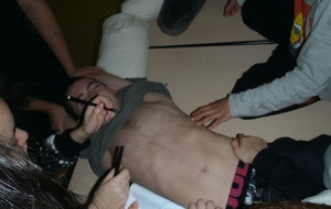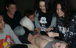 Après ce repas, batailles de polochons, art corporel avec en modèle Laurent et Maxime, et pour finir cette journée un petit loup garou.