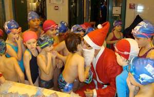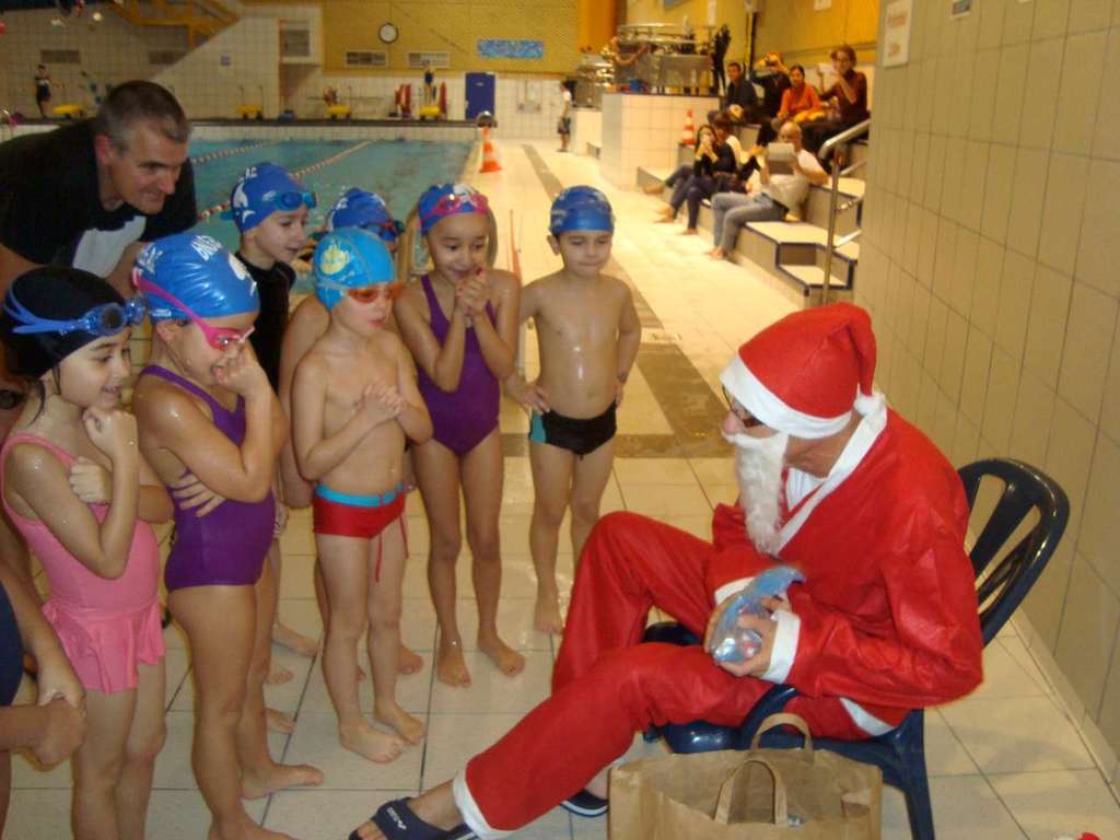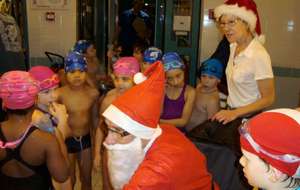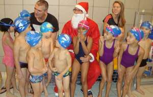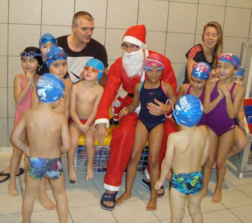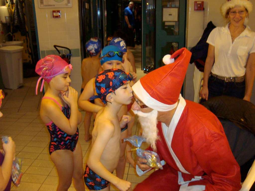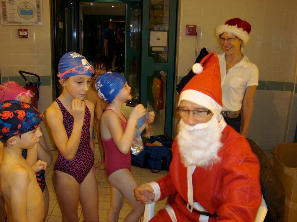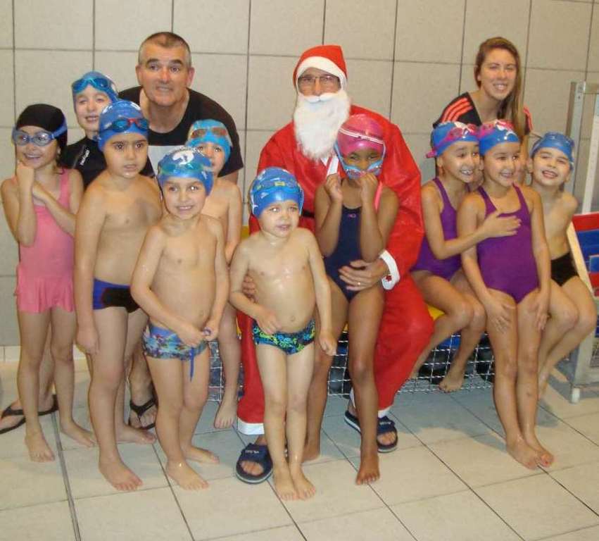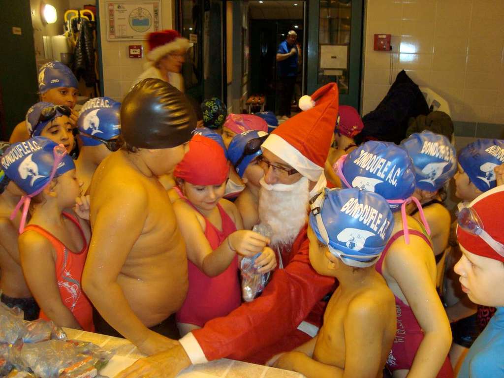 Le père Noel du BAC a arrêté son traîneau à la piscine de Lisses et de Evry-agora .