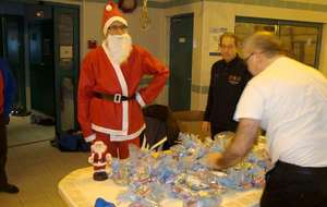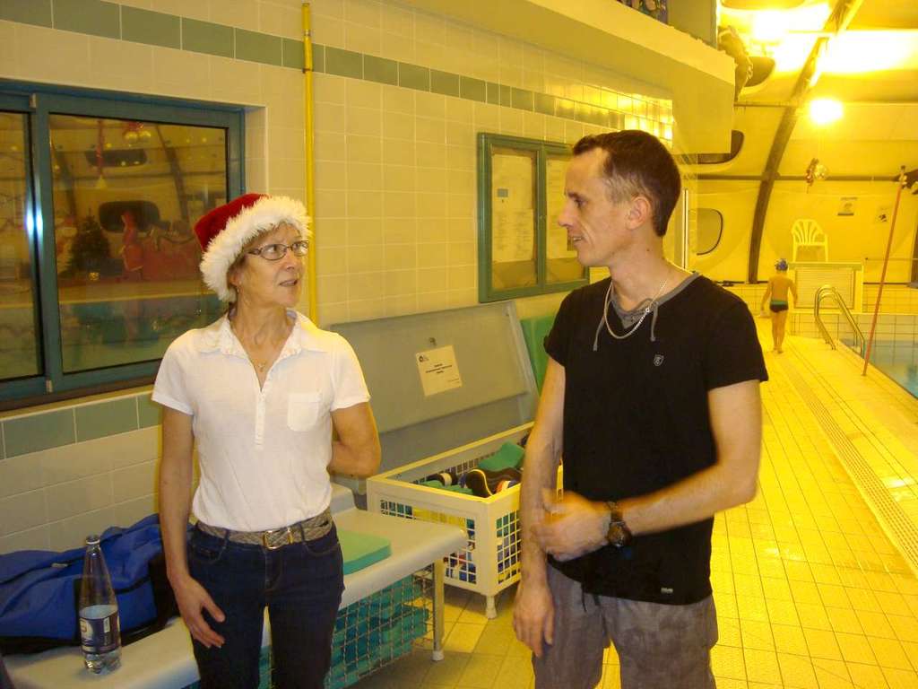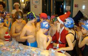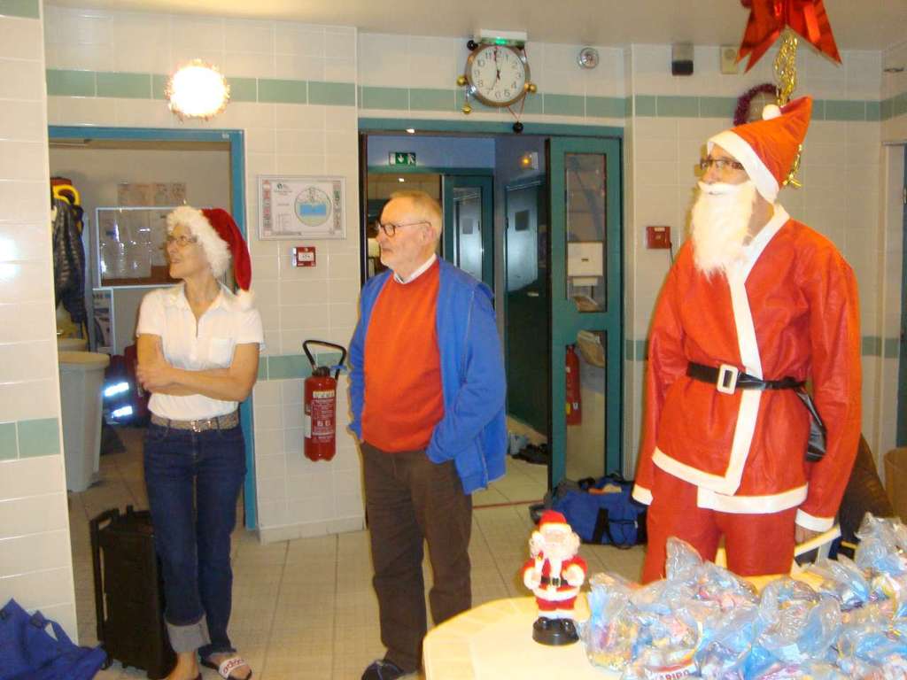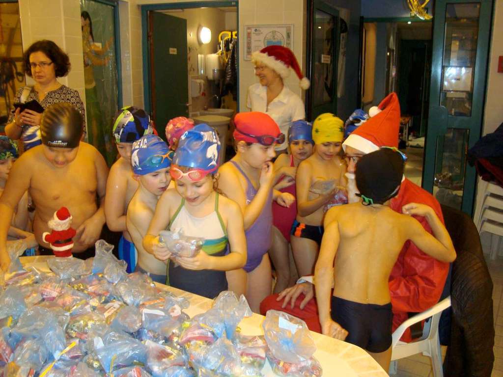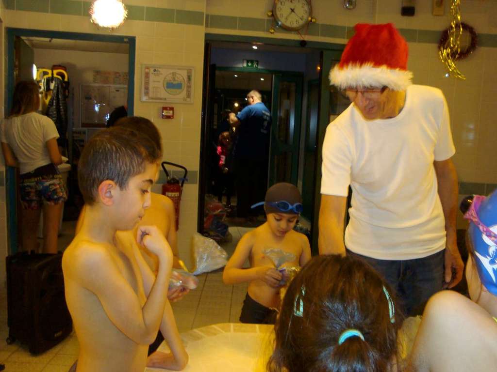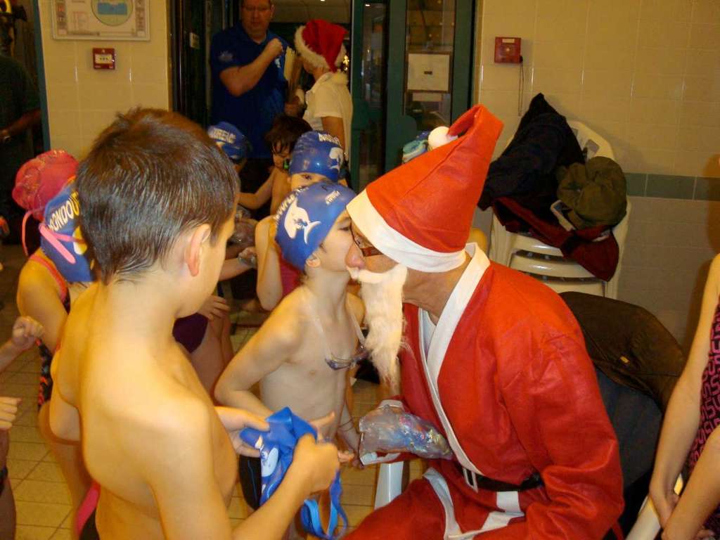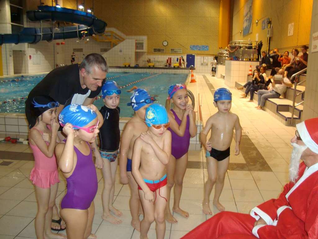 Le père Noel du BAC a arrêté son traîneau à la piscine de Lisses et de Evry-agora .