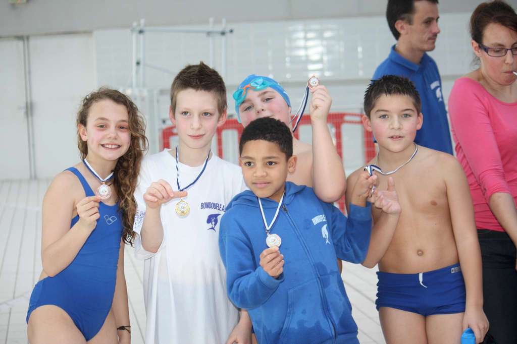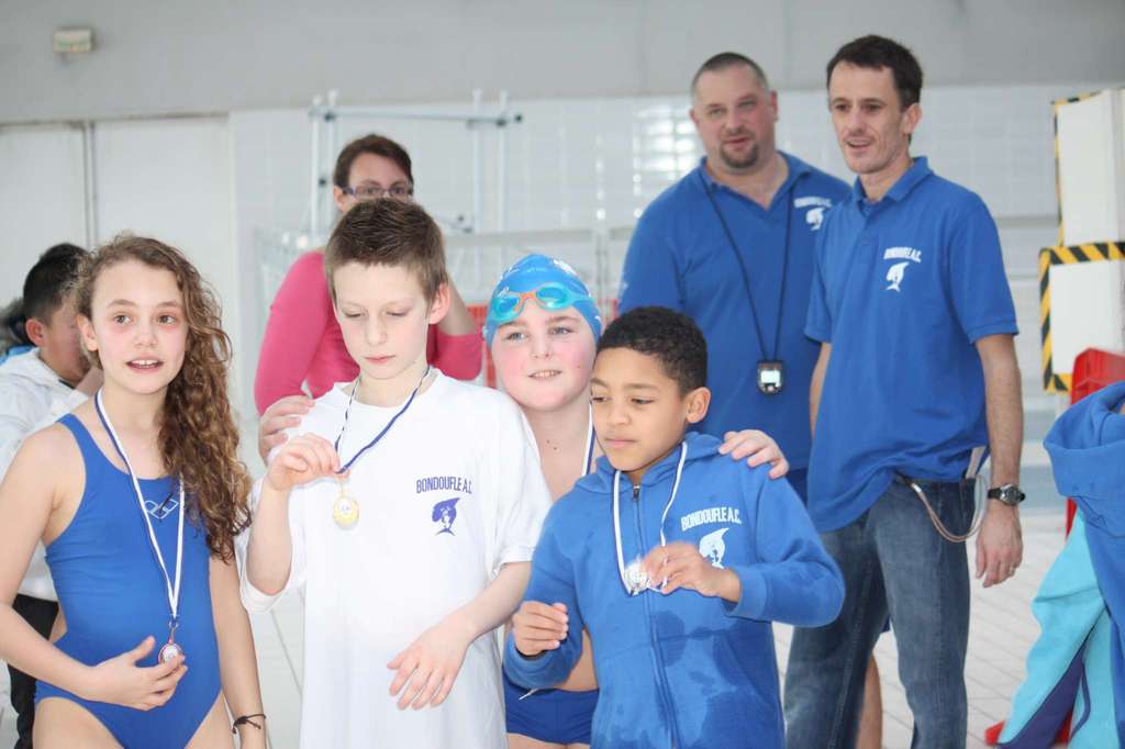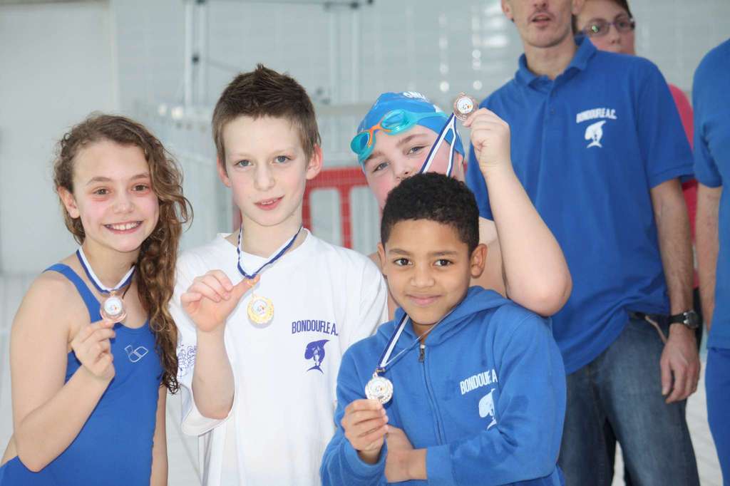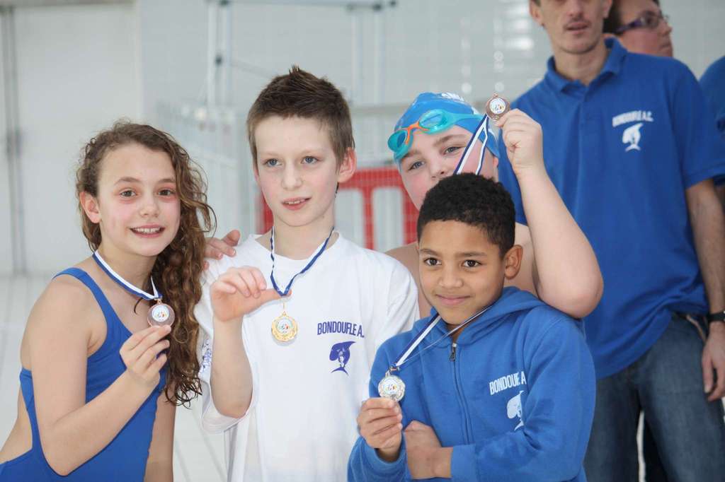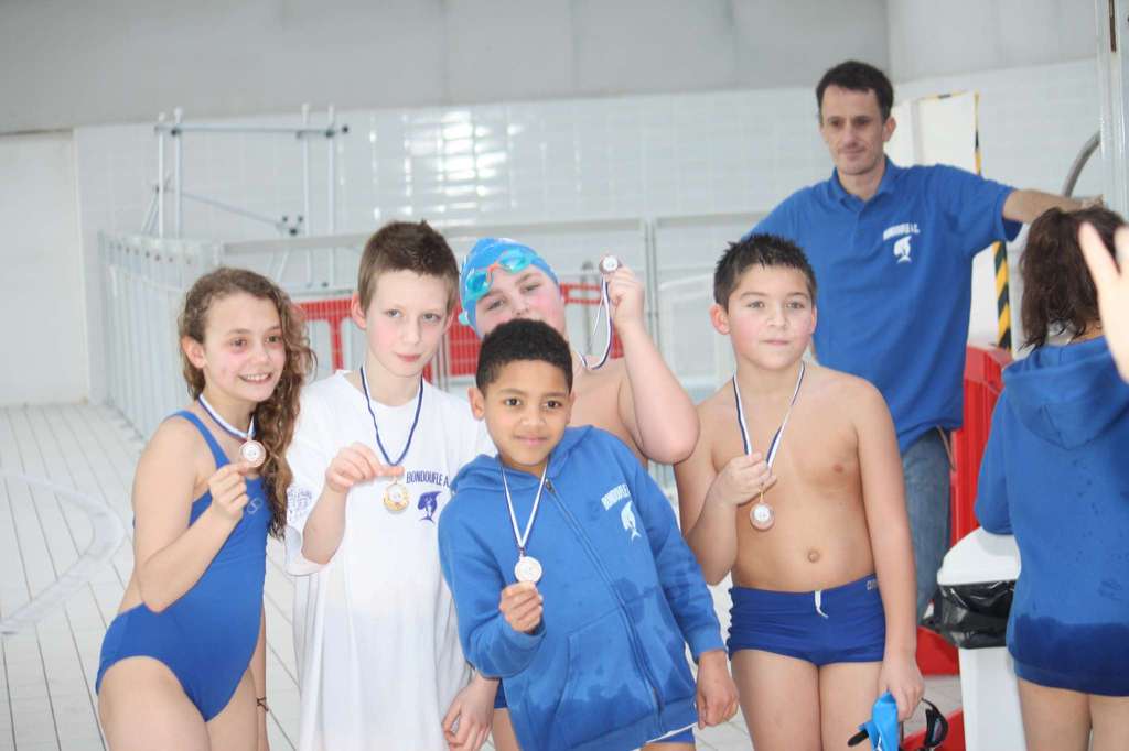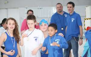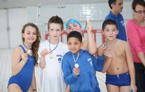 Bravo aux poussins toutes ces médailles au 100m Brasse :Chloé, Logan, François, Ethan et Salim.