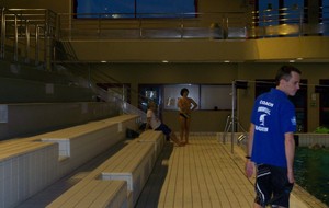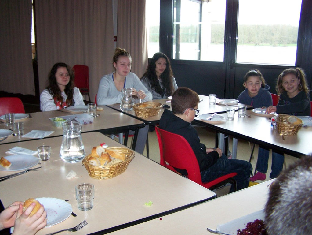 Nous sommes arrivés hier à la base de voile vers 23h20 pour un couché vers minuit.... Le réveil sonne quelques heures plus tard et hop 7h tout le monde au p'tit déj ! Départ pour le premier entrainement de la semaine à 7h45 sous la pluie... Découverte d'un très bel équipement sportif dont les longueurs sont interminables... 8h dans l'eau pour 1h30 d'effort. Retour à la base cette fois ci au sec et en plein jour, petite balade autour du lac pour les uns, baby-foot, foot et repos dans les chambres pour les autres.... Ce midi au menu, betteraves vinaigrettes, filet de dinde macaronis, fromage et mousse au chocolat... Début d'après midi au calme pour les grands et les filles et les petits toujours en action (foot ou baby)... Au goûter brioche et Nutella et nous voilà prêt à repartir à la piscine pour 2h d'entrainement. Ce soir au menu, croissant au jambon ou betteraves, merlu à l'oseille semoule, fromage et panna cotta en dessert... (le repas de ce soir n'aura pas fait l'unanimité !!!!). Bientôt l'heure du couché, les grands devant un film, les filles dans les chambres et les garçons toujours en action.... Voilà les news de cette première journée ! A demain !