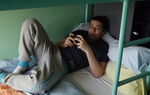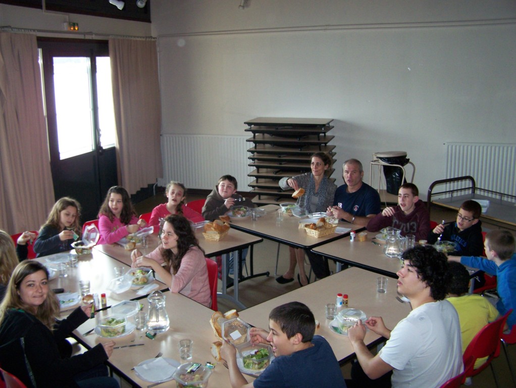 Pour cette deuxième journée nous avons gagné une demi-heure de sommeil… mais pas pour tout le monde…. Salim, François, Thomas et Logan se sont levés à 6h50 direction le baby foot, pour les autres le réveil s’est fait vers 7h30. Départ à la piscine à 8h15 et tout le monde dans l’eau à 8h30 jusque 10h30, avec le retour sous un beau ciel bleu et avec le soleil. Petite balade autour du lac pour certains et pour les autres ordinateur, téléphone… en mode geek (moi la première) !!! Le repas de ce midi n’aura pas eu de succès sauf pour Jérôme… (salade de lardons ou haricots vinaigrettes, agneau et flageolets, fromage, flan et fruits) ! Ce début d’après midi aura été bien calme pour les plus grands en mode sieste et pour les autres petites partie de basket avec sur la fin un peu de pluie…. Retour à l’entrainement de 16h à 18h, ensuite repos dans les chambres en attendant l’heure du dîner. Ce soir au menu, haricots vinaigrettes, tarte à l’entraineur (aux poireaux), coquillettes, fromages et poires au sirop. Ce début de soirée a commencé sur les baby foot bien entendu et va finir en jeu du loup garou je pense….Voilà c’est tout pour aujourd’hui…