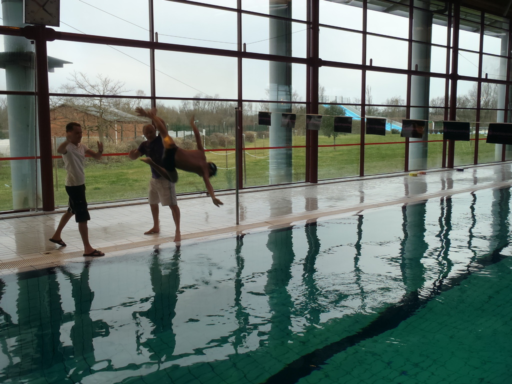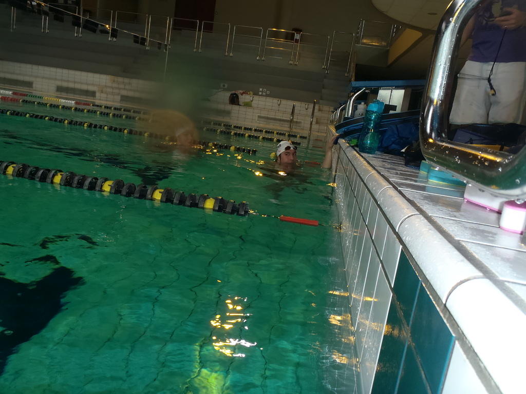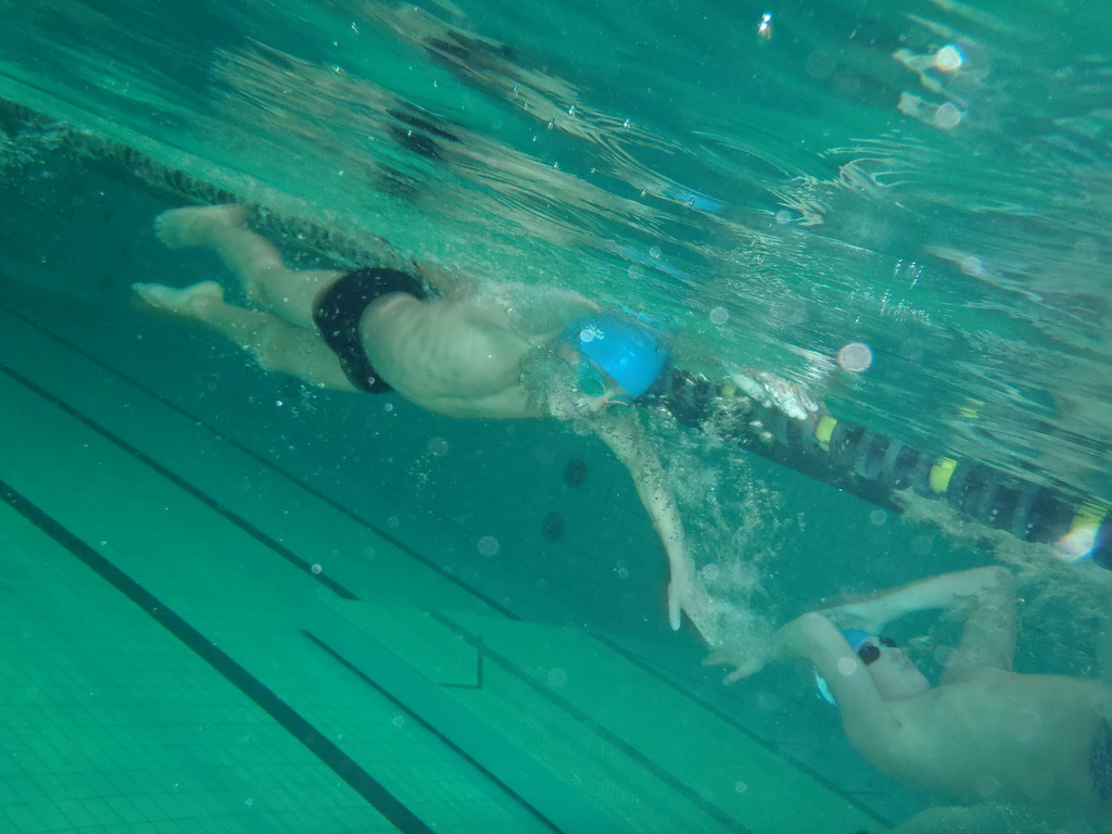 Départ pour l’entrainement à 13h45 pour nager de 14h à 16h. Cet après midi les grands ont fait 5100 mètres et 3400 mètres pour les petits.