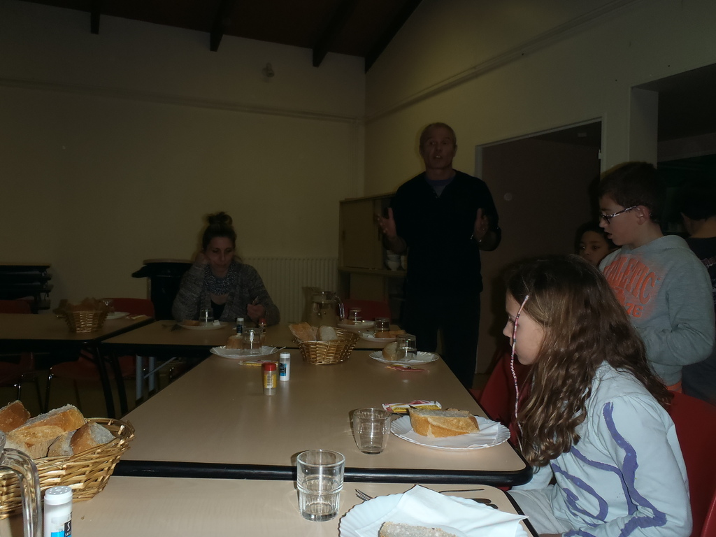 Retour vers 11 heures au centre, au programme rangement des chambres avant le déjeuner. Ce midi nous avons mangé céleri rave vinaigrette au curry, saucisses grillées et poulet pommes de terre, fromage et salade de fruits.