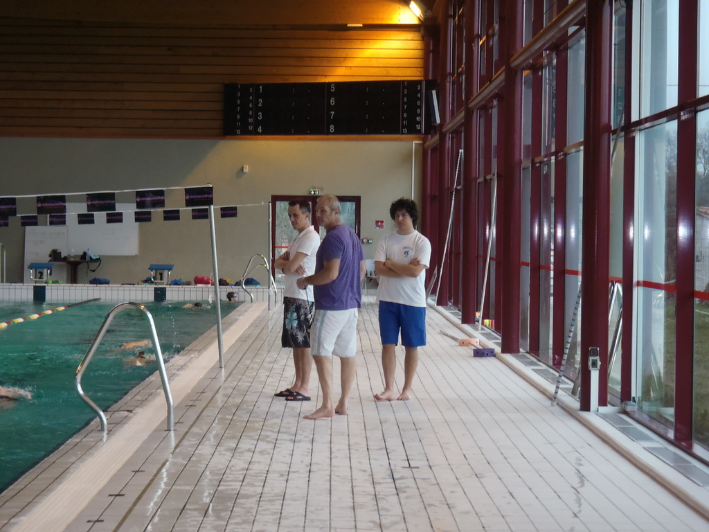 Aujourd’hui cinquième jour réveil à 8h30 pour un petit déj ! et hop direction la piscine pour le seul et unique entrainement de la journée 9h30 – 11h30 sous la pluie. Vers 12h retour du soleil et hop on passe à table… Ce midi nous avons mangé chou fleur vinaigrette, sauté de bœuf à l’échalote avec des pâtes, fromage et clafoutis.