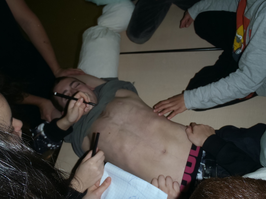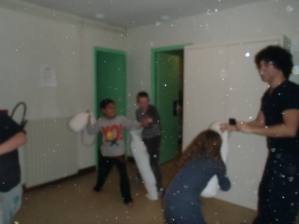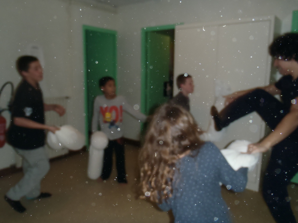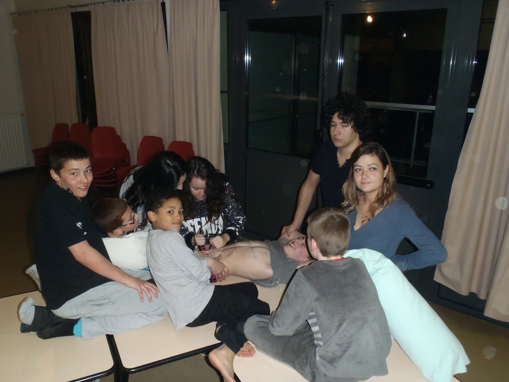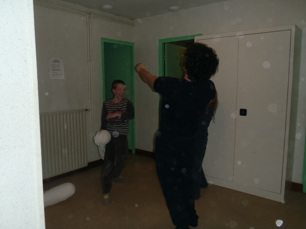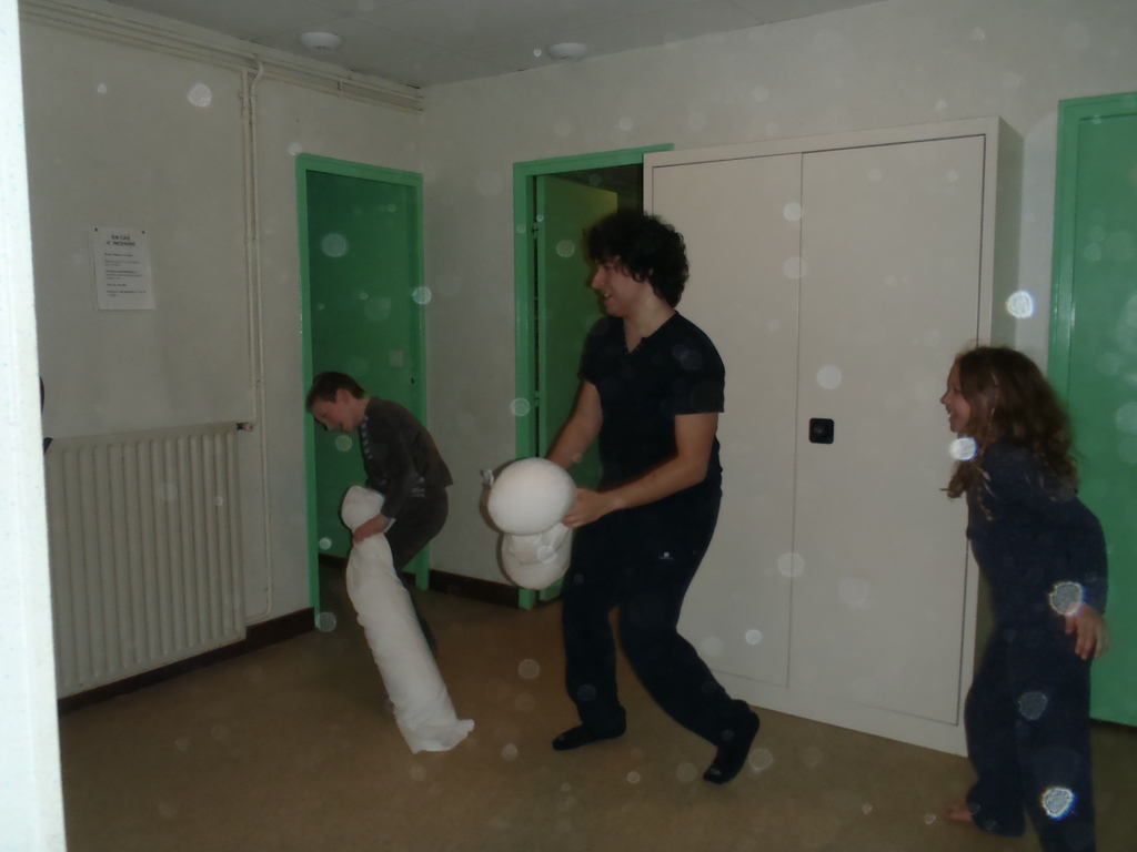 Après ce repas, batailles de polochons, art corporel avec en modèle Laurent et Maxime, et pour finir cette journée un petit loup garou.