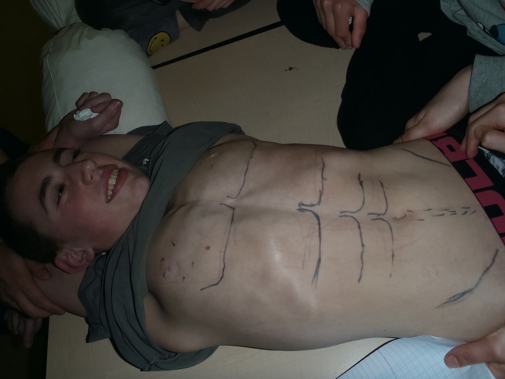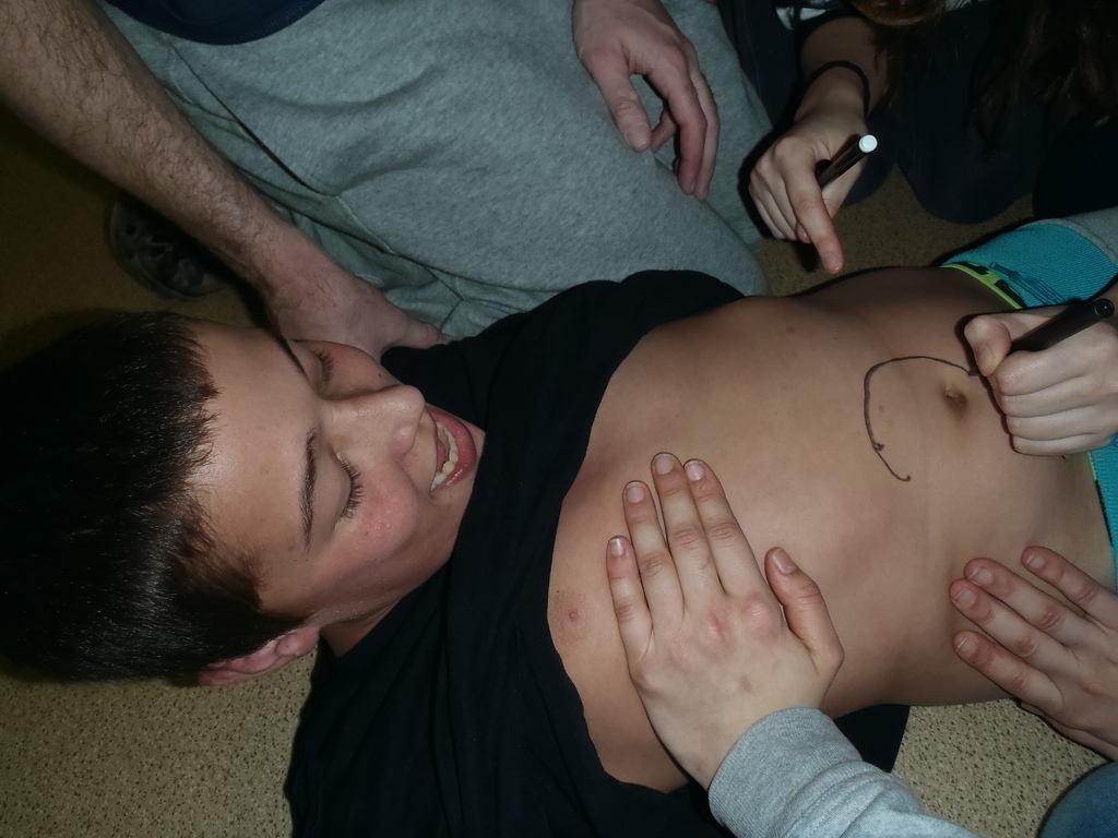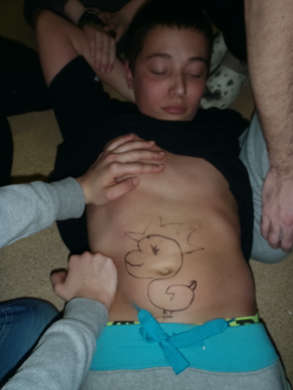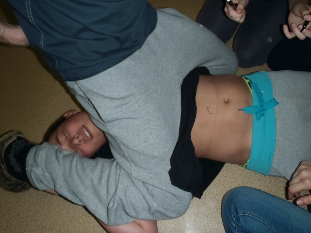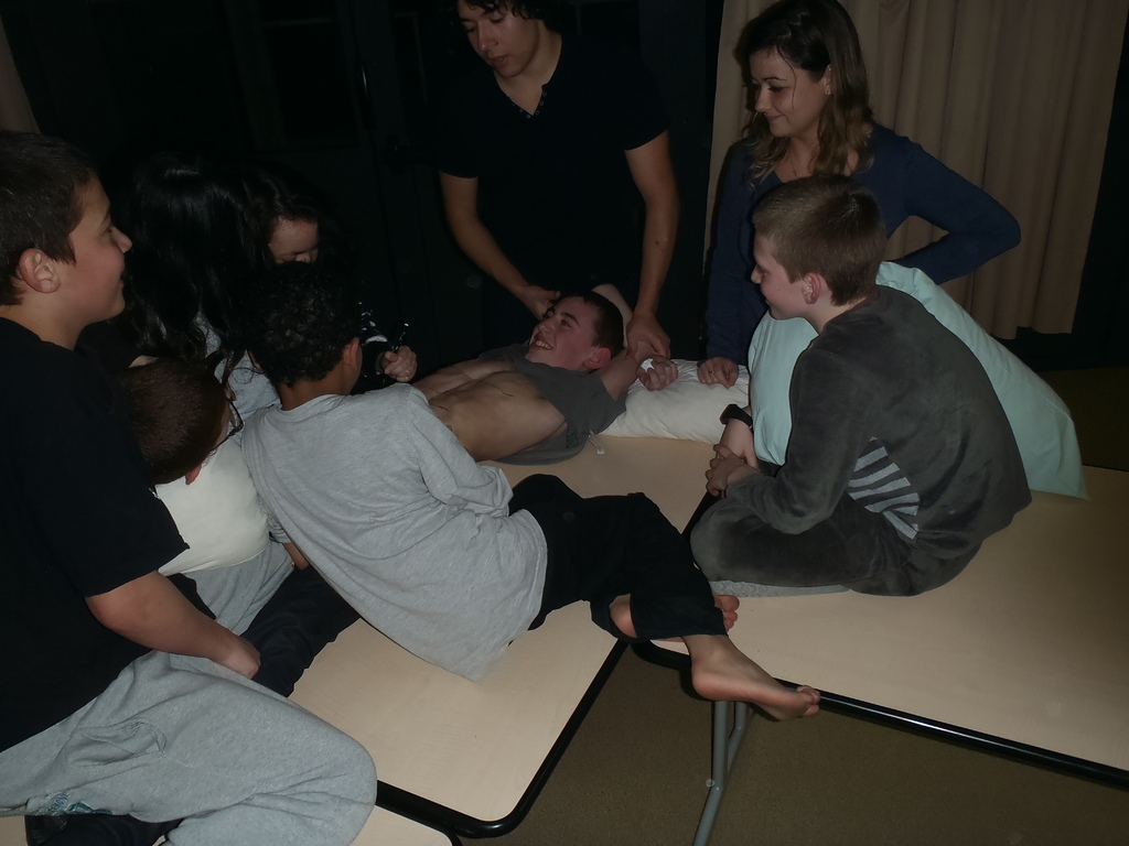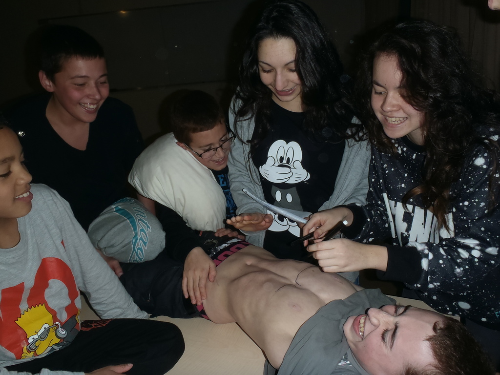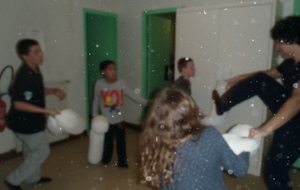 Après ce repas, batailles de polochons, art corporel avec en modèle Laurent et Maxime, et pour finir cette journée un petit loup garou.