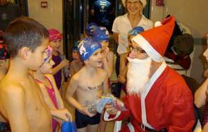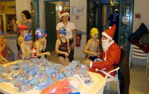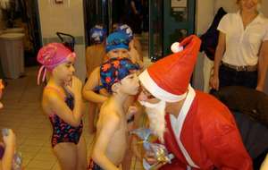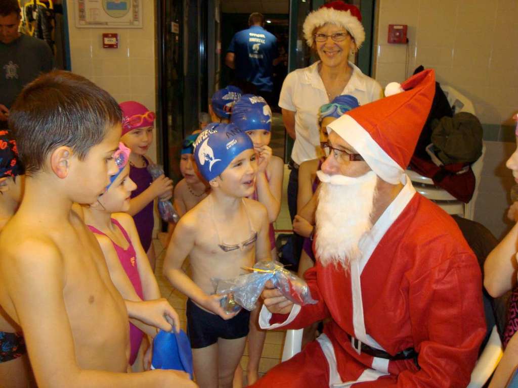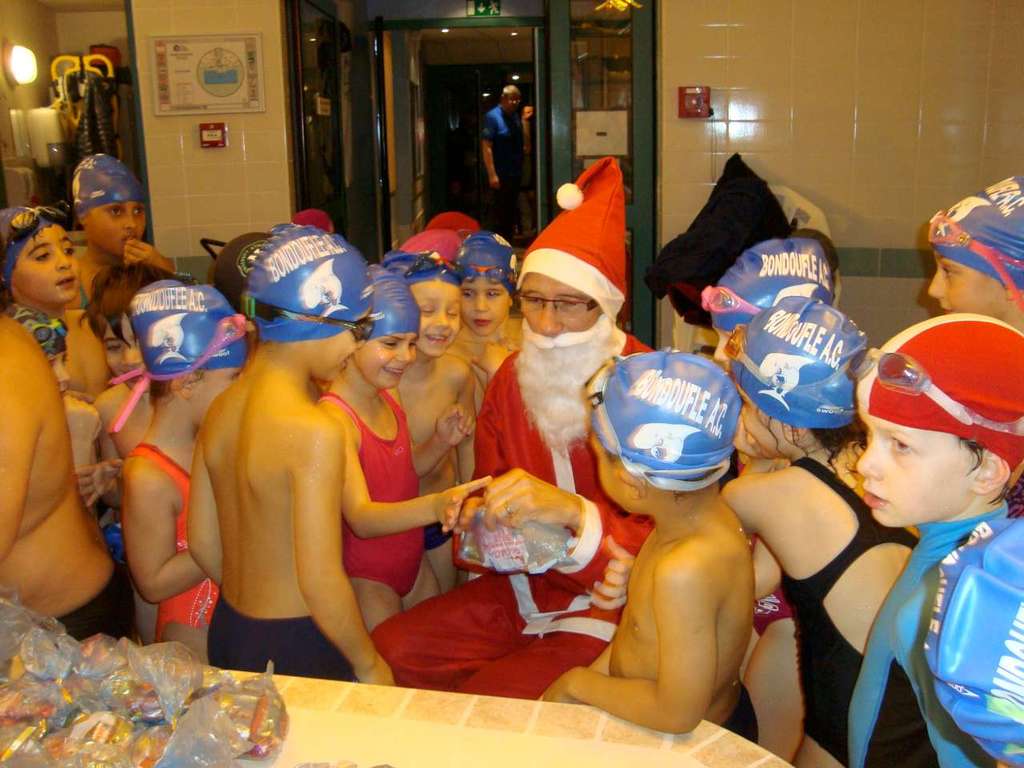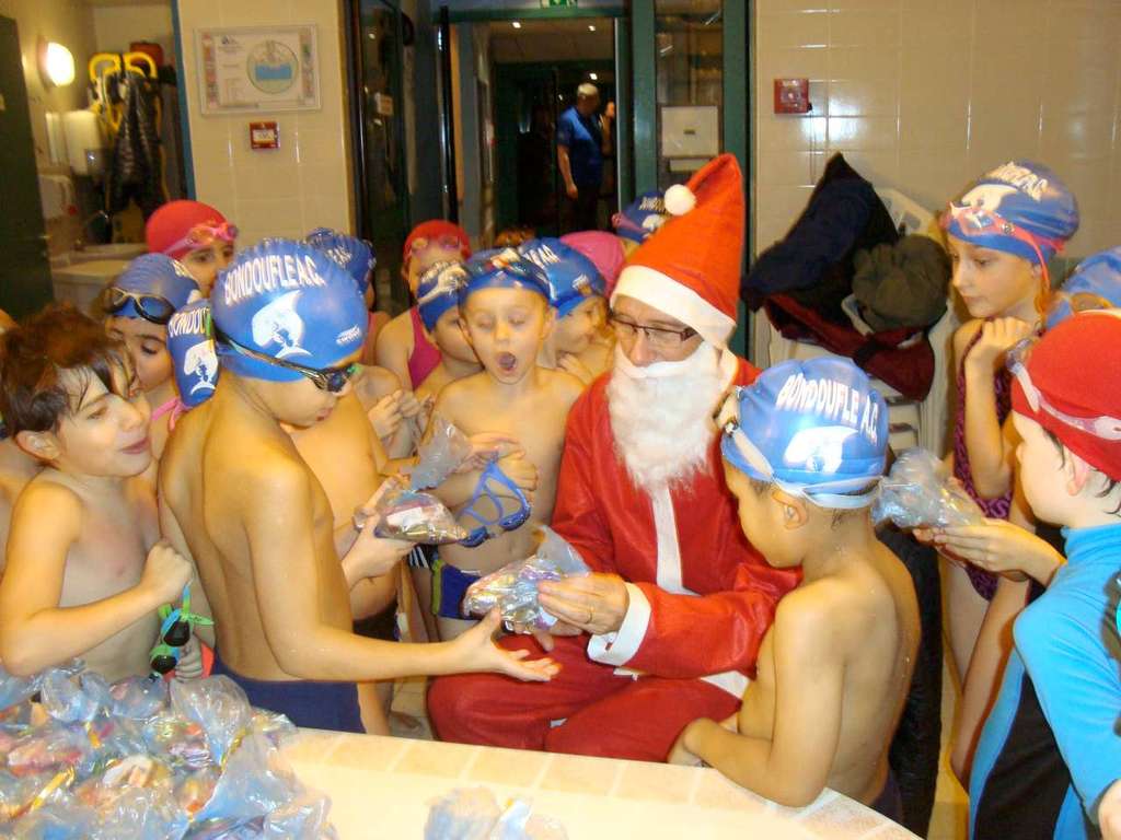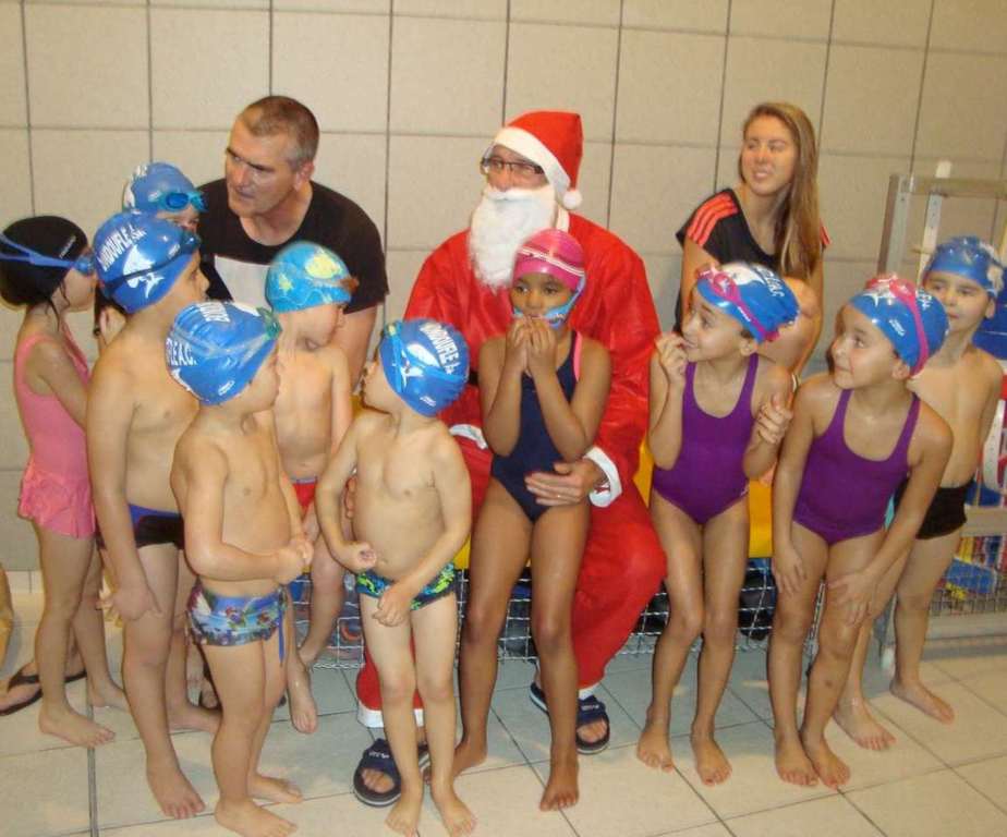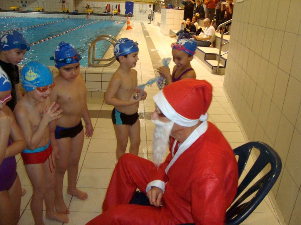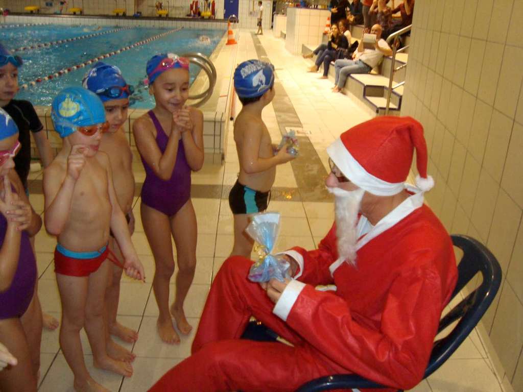 Le père Noel du BAC a arrêté son traîneau à la piscine de Lisses et de Evry-agora .