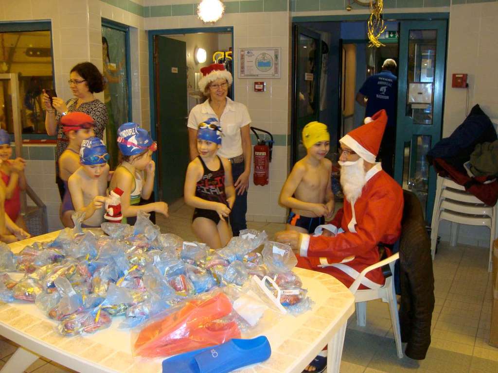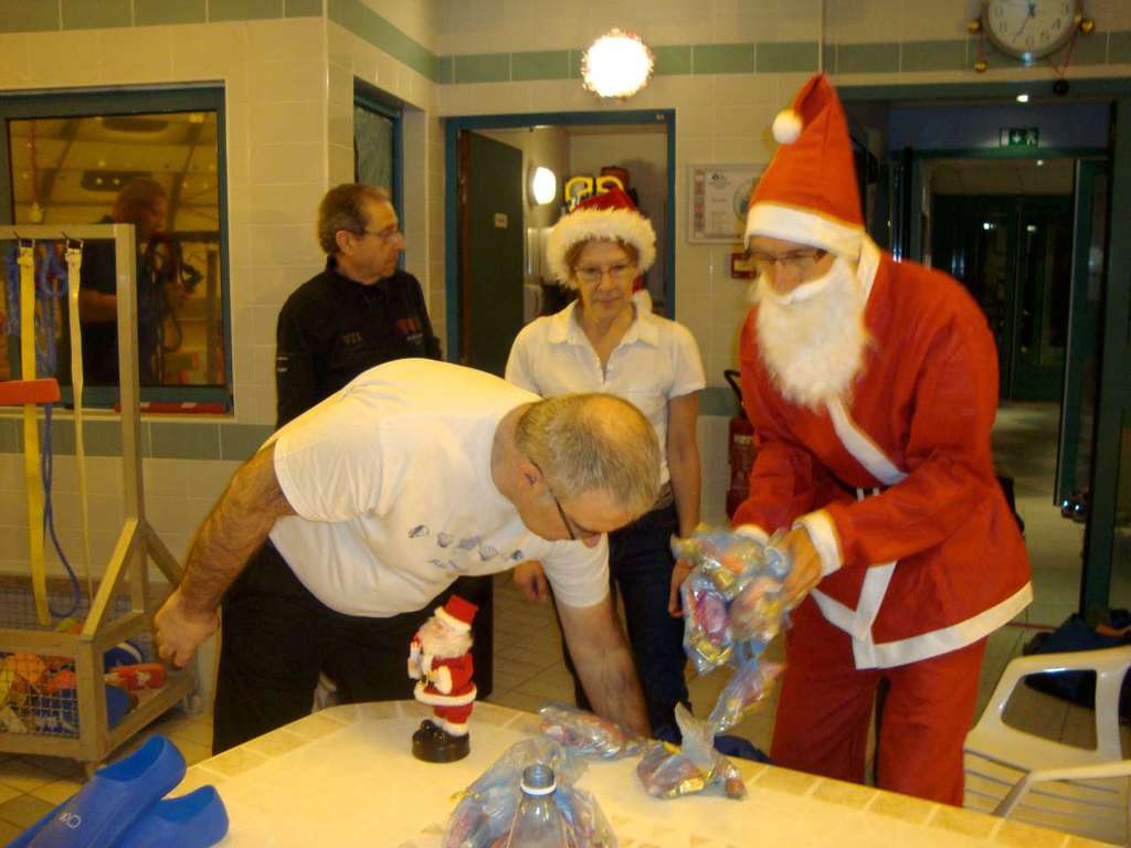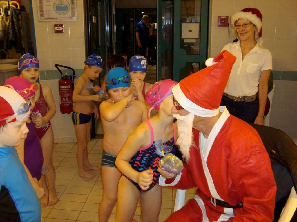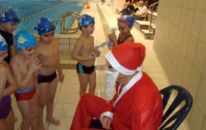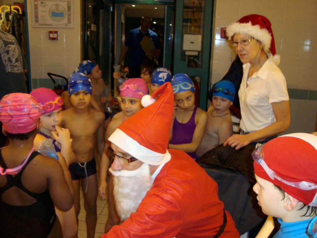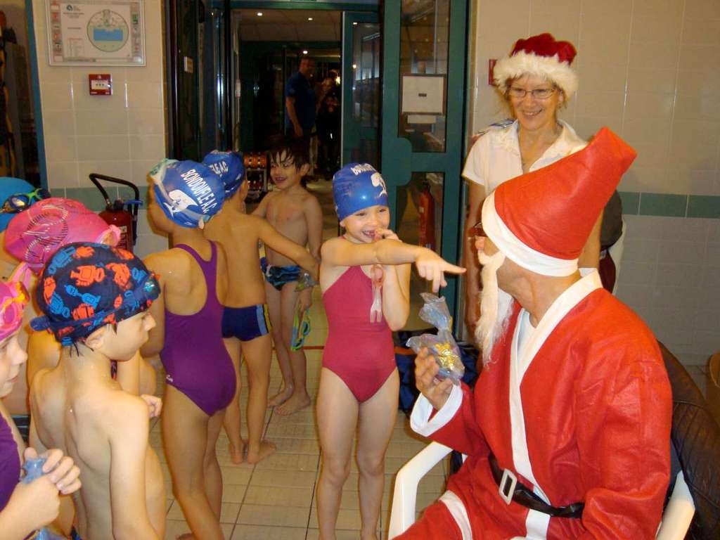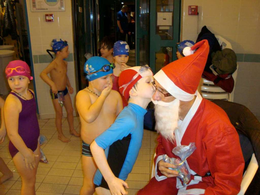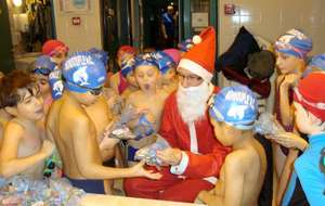 Le père Noel du BAC a arrêté son traîneau à la piscine de Lisses et de Evry-agora .