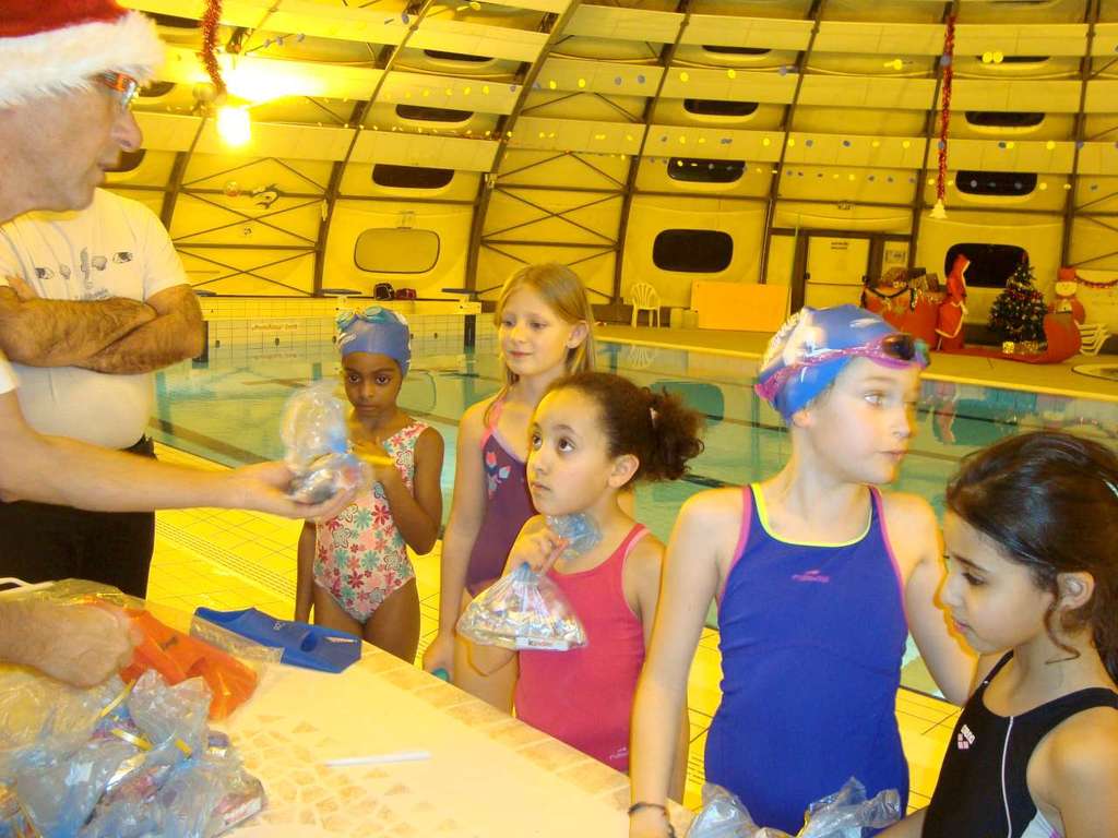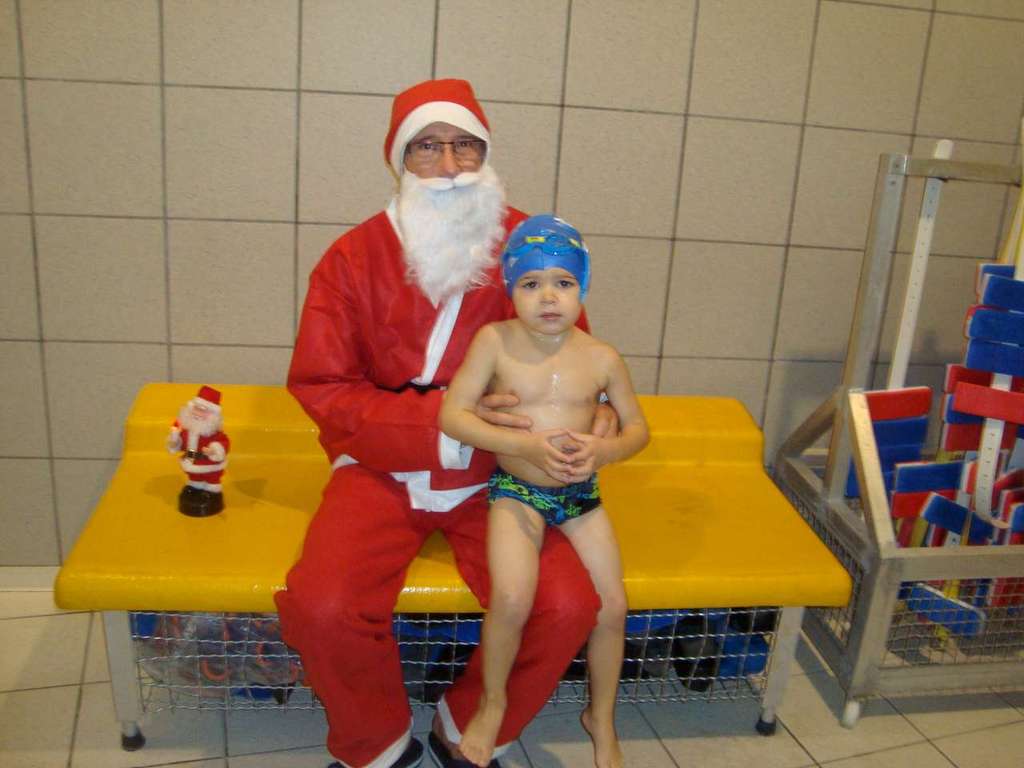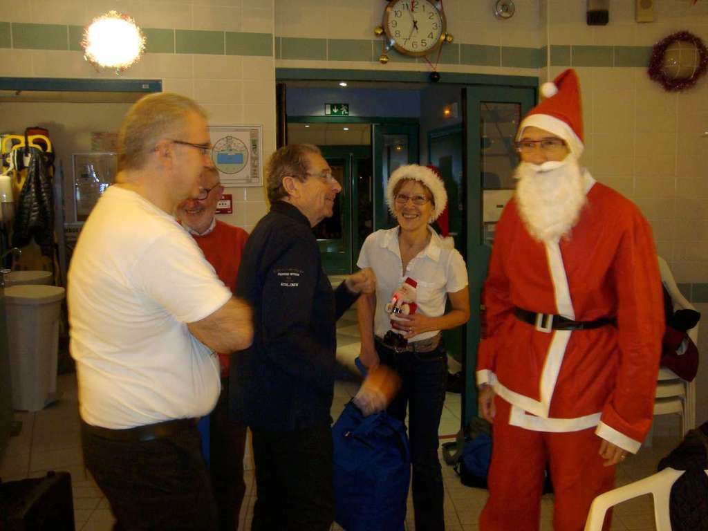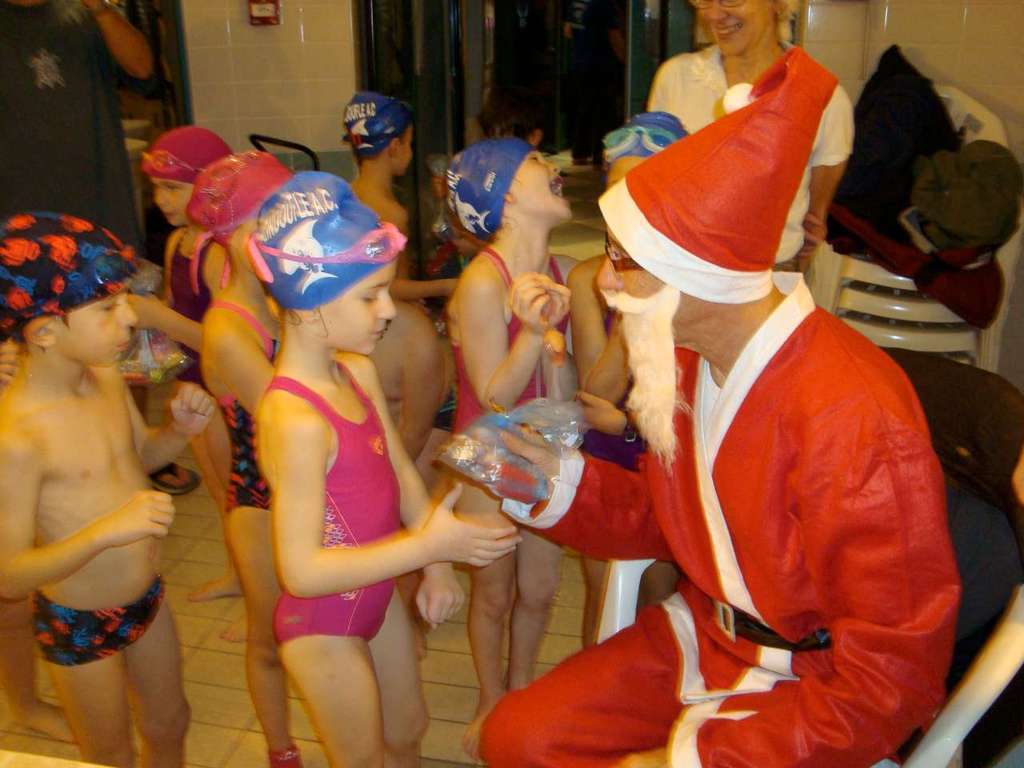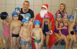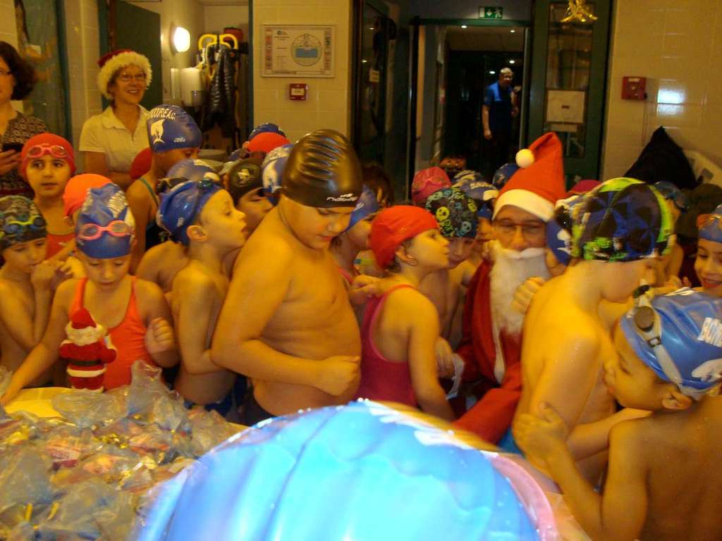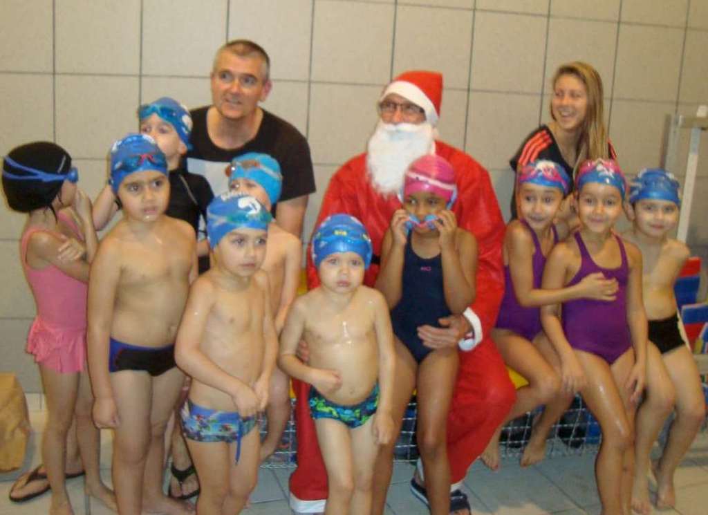 Le père Noel du BAC a arrêté son traîneau à la piscine de Lisses et de Evry-agora .