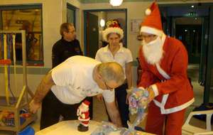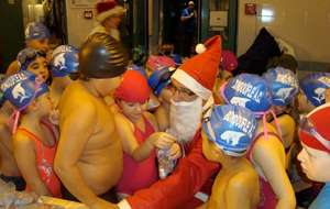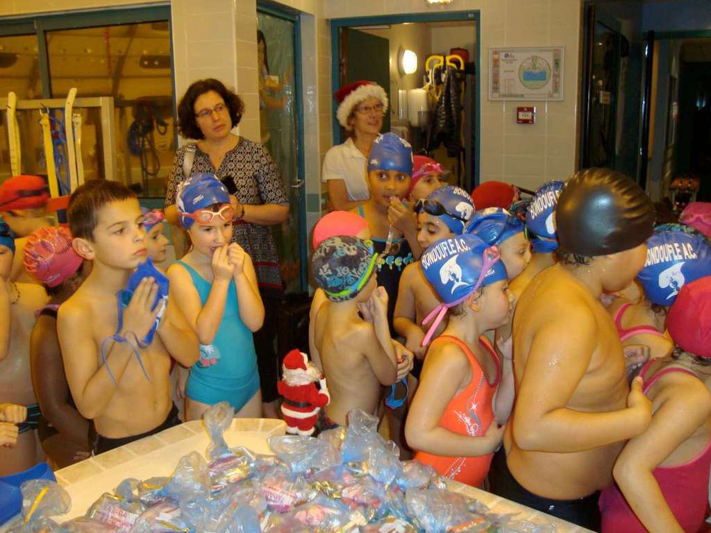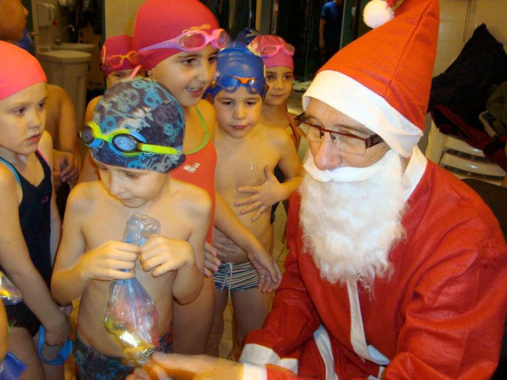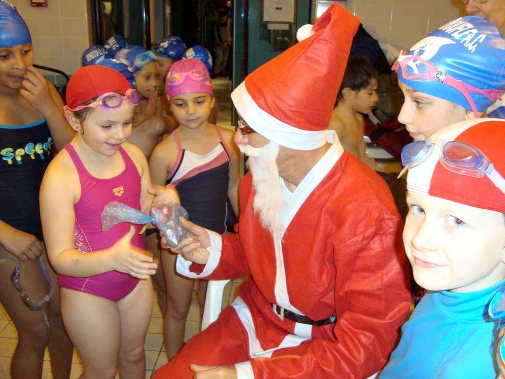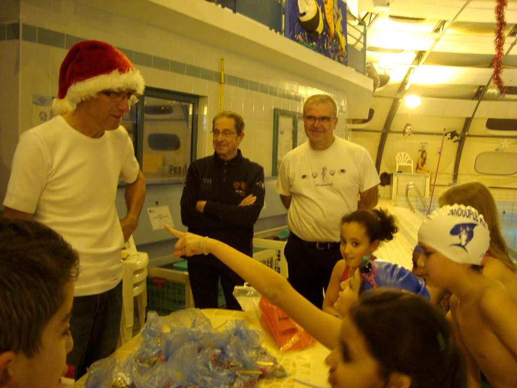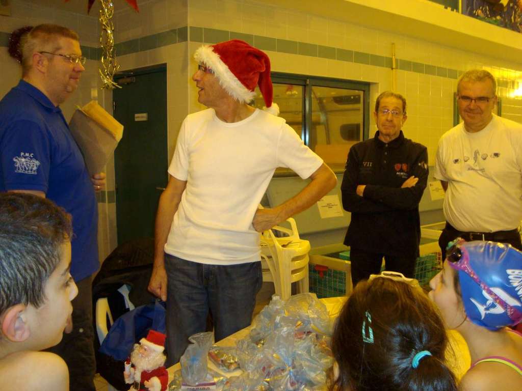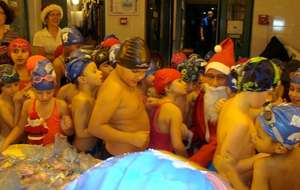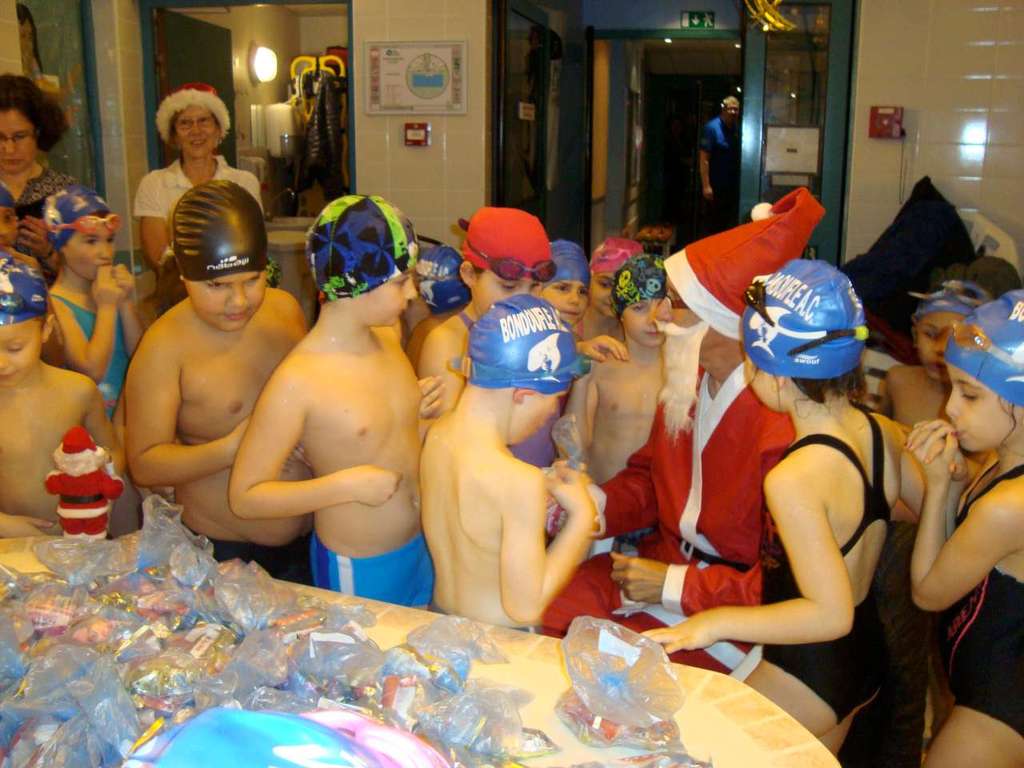 Le père Noel du BAC a arrêté son traîneau à la piscine de Lisses et de Evry-agora .